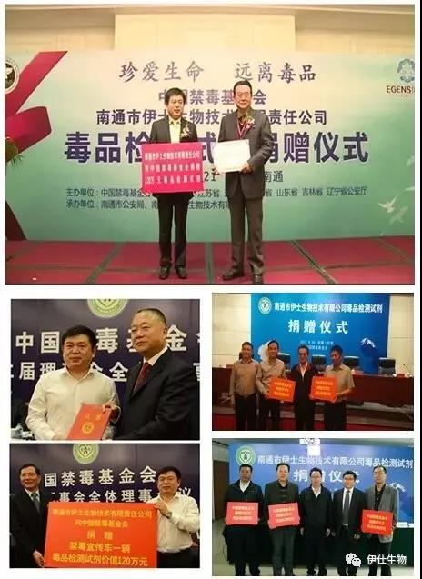伊仕生物多年來一直致力于社會(huì)公益事業(yè),自2012年起,通過中國禁毒基金會(huì)向全國各地禁毒部門累計(jì)捐贈(zèng)價(jià)值七百多萬元的毒品檢測(cè)試劑,并出資支持中國禁毒網(wǎng)建設(shè)。董事長歐衛(wèi)軍也被聘為中國禁毒基金會(huì)理事。2017年,成立伊仕生物禁毒基金,向中國禁毒基金會(huì)捐贈(zèng)價(jià)值313萬元的毒品檢測(cè)試劑用于支持禁毒事業(yè),所捐的毒品檢測(cè)試劑分別支持了內(nèi)蒙古、黑龍江、江蘇、浙江、安徽、江西、山東、湖南、四川、青海、寧夏、新疆省(自治區(qū))等禁毒部門毒品試劑檢測(cè)工作。2018年,被開發(fā)區(qū)慈善會(huì)評(píng)為“最具愛心慈善捐款單位”。2020年,伊仕生物向南通開發(fā)區(qū)慈善會(huì)捐款100萬元人民幣,成立伊仕生物慈善助學(xué)基金,用于定向西部地區(qū)助學(xué)及內(nèi)部困難職工救助。