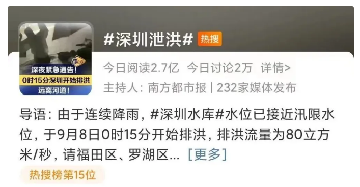5日-9日,臺風“海葵”先后兩次登陸福建、廣東。受其影響,南方多地出現(xiàn)特大暴雨,福建省、廣東省氣象臺多次發(fā)布“暴雨預警一級”。福州、廈門、漳州、深圳、廣州、佛山等城市內澇嚴重,部分城市雨水齊腰,短時間強降雨超過100毫米,深圳降雨量更是打破1953年以來的降雨極值,地鐵灌水,深圳泄洪多次登上各大平臺的熱搜第一。