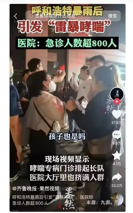 隨后,呼和浩特市衛(wèi)健委工作人員表示,近期當?shù)囟嗉裔t(yī)院的雷暴哮喘病人確實增多了。