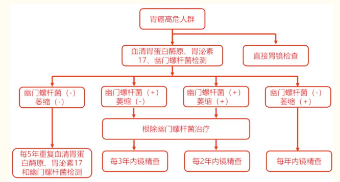 2014年4月,我國(guó)提出《中囯早期胃癌篩查及內(nèi)鏡診治共識(shí)意見(jiàn)》,共識(shí)推薦聯(lián)合血清學(xué)檢查胃蛋白酶原和幽門(mén)桿菌對(duì)胃癌高危人群進(jìn)行檢測(cè)的路徑。